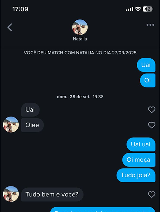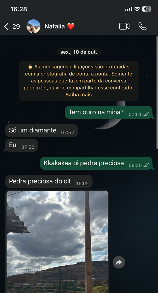 Começamos a conversar no dia 28/09, Você me passou seu instagram mas foi apenas no dia 10/10 que fomos para o WhatsApp